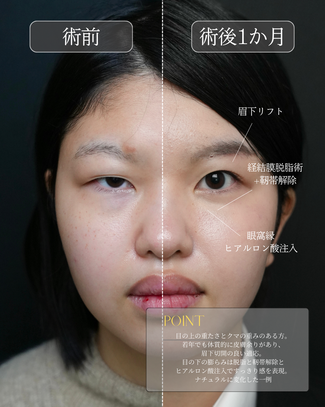 | リスク・副作用 | 腫れ:数日~1週間程度 内出血:まれに内出血が生じる、メイクで隠せる程度 |